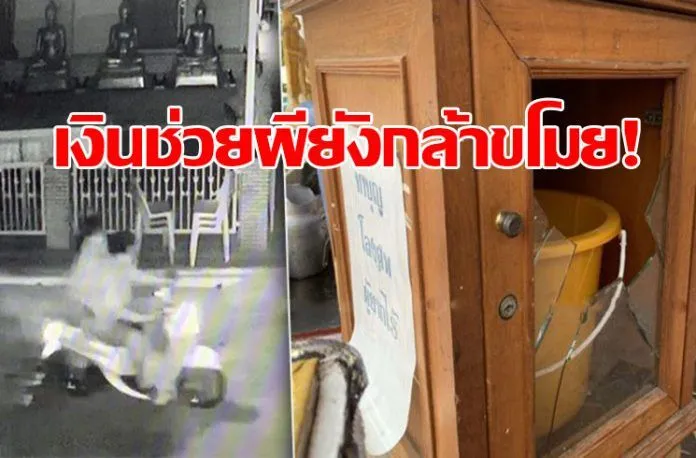 เบื้องต้นเจ้าหน้าที่ตรวจสอบกล้องวงจรปิดพบว่ามีคนร้ายวัยรุ่น 2 คนอายุประมาณ 15-18 ปีสวมเสื้อยืด กางเกงขาสั้น ขี่รถจยย.ยามาฮ่า ฟีโน่ วิ่งมาจอดหน้าวิหารพระพุทธรูป จากนั้นคนนั่งซ้อนท้าย ได้ลงจากรถเดินไปปีนรั้วเข้าทุบตู้บริจาคทั้ง 2 ตู้ขโมยเงินทำบุญหลบหนีไป เหตุเกิดช่วงเวลา 00.30 น.ที่ผ่านมา ขณะนี้เจ้าหน้าที่ฝ่ายสืบสวน อยู่ระหว่างติดตามตัวคนร้ายวัยรุ่น ทั้ง 2 คนมาดำเนินคดี