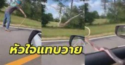 (ระทึก! ชายโยนงูเข้ารถหญิงสาว)
