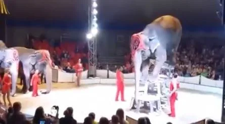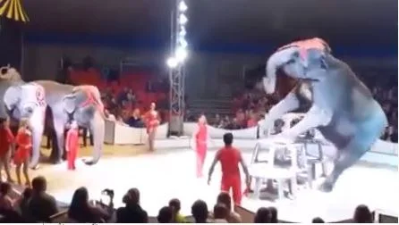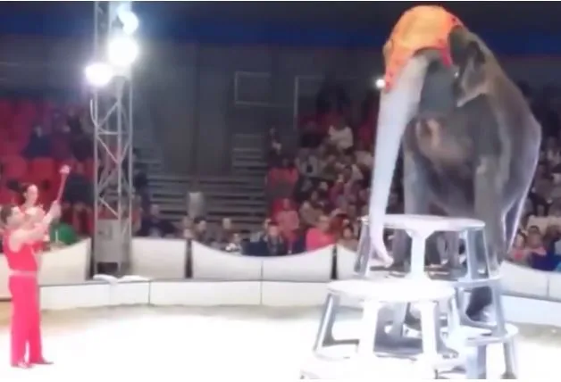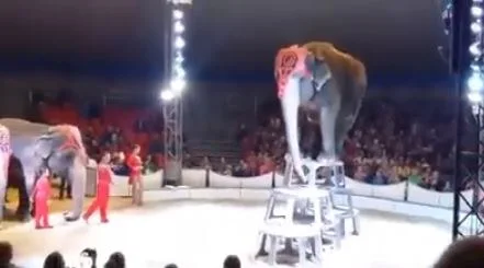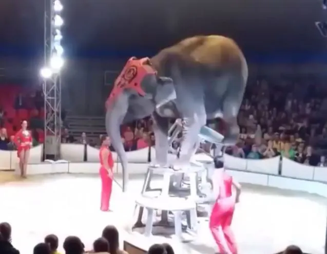 เป็นอีกหนึ่งเรื่องราวสุดสะเทือนใจที่เกิดขึ้นกับช้างที่ต้องมาอยู่ในโรงละครสัตว์ โดยคลิปที่ถูกแชร์ต่อกันในโซเชียล ขณะที่เหล่านักแสดงได้สั่งให้ช้างตัวหนึ่ง เดินขึ้นไปบนโต๊ะที่เรียงกันถึง 3 ชั้น พร้อมกับออกคำสั่งให้ช้างทำการแสดง ท่ามกลางเสียงปรบมือของท่านผู้ชม แต่ทว่าเหตุการณ์ไม่คาดคิดก็เกิดขึ้น เมื่อจู่ๆเจ้าช้างตัวนี้ได้พลัดตกจากโต๊ะลงมาด้านล่าง ผู้คนที่เข้ามารับชมต่างแตกตื่นและตกใจกับเหตุการณ์ที่เกิดขึ้น ซึ่งหลังจากที่ได้มีการเผยแพร่คลิปออกไป ก็มีผู้คนเข้ามาแสดงความคิดเห็น โดยส่วนใหญ่ต่างรู้สึกสงสารช้างที่ต้องมาถูกบังคับให้แสดง