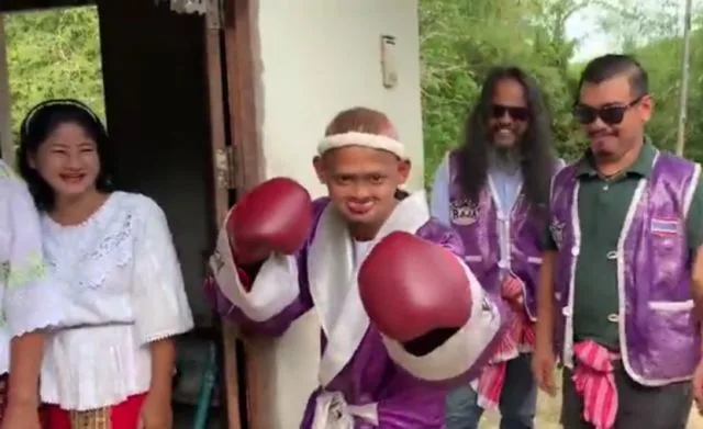 โดยขบวนขันหมากในครั้งนี้มาในตรีมนักมวยสุดแปลกแหวกแนว สาเหตุที่ต้องแต่งกายที่ดูแปลกแหวกแนวเพื่อมาสู่ขอเจ้าสาว เป็นเพราะว่าทำตามคำบนบานสานกล่าวที่เคยให้ไว้ว่า หากตนได้มีโอกาสแต่งงานครั้งที่ 2 จะไม่สวมใส่ชุดเจ้าบ่าวแบบที่เคยแต่งงานครั้งก่อน จึงออกแบบชุดแต่งกายใหม่ ไม่เหมือนคนอื่น