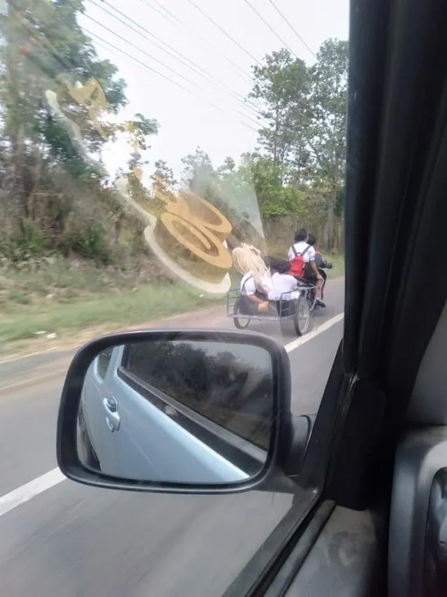 เรียกได้ว่าเป็นอีกหนึ่งเรื่องราวที่สร้างความฮือฮาเป็นอย่างมาก เมื่อผู้ใช้เฟซบุ๊กที่มีชื่อว่า "Sirichai Singtong" ได้มีการโพสต์ภาพขณะที่นักเรียนหญิงกลุ่มหนึ่ง กำลังขี่รถจักรยานยนต์พร้อมกับมีรถเข็นพ่วงทางด้านหลังให้เพื่อนได้นั่ง มองดูแล้วทั้งฮาทั้งน่ารักไปอีกแบบ ทางเดียวกันไปด้วยประหยัดขึ้นเยอะ ซึ่งหลังจากที่ได้มีการโพสต์ภาพออกไป ก็มีชาวเน็ตกดไลค์กดแชร์กันเป็นจำนวนมาก แต่แม้จะดูน่ารักแต่ก็ระวังในเรื่องของความปลอดภัยกันด้วยนะจ๊ะหนูๆ เป็นอีกหนึ่งสีสันของวันเปิดเทอมที่ไม่เหมือนใครจริงๆ