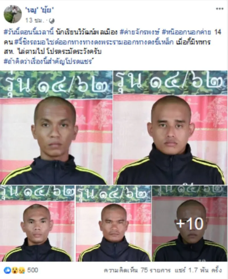 ทั้งนี้หลังจากโพสต์ดังกล่าวถูกเผยแพร่ออกไป ก็มีชาวเน็ตแห่เข้ามาคอมเมนท์กันเป็นจำนวนมาก พร้อมกับมีรายงานความคืบหน้าว่าขณะนี้จับตัวได้แล้ว 2 คน ที่เหลืออีก 12 คนยังหลบหนี หากใครพบเบาะแสโปรดแจ้งด่วน.