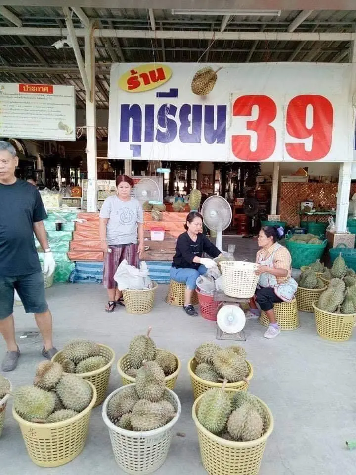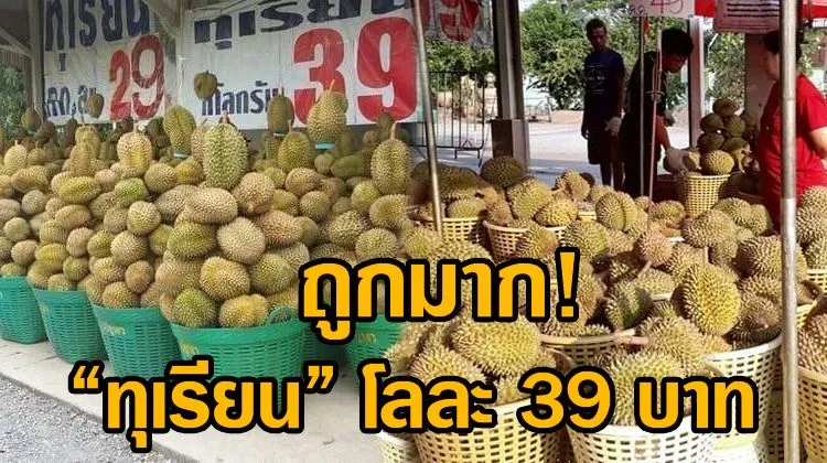 เอาใจคนชอบทุเรียน เปิดพิกัด “ทุเรียนราคาถูก” ราคากิโลกรัมละ 39 บาท ล่าสุด เพจข่าวสารชลบุรี-ระยอง โพสต์ภาพทุเรียนกิโลกรัมละ 39 บาท พร้อมระบุแคปชั่นว่า “ผ่านเส้นสิงห์บุรี ติดป้ายขายทุเรียนโลละ 39 บาท แต่ต้องซื้อยกเข่งนะ จะได้ในราคาโลละ 39 บาท”