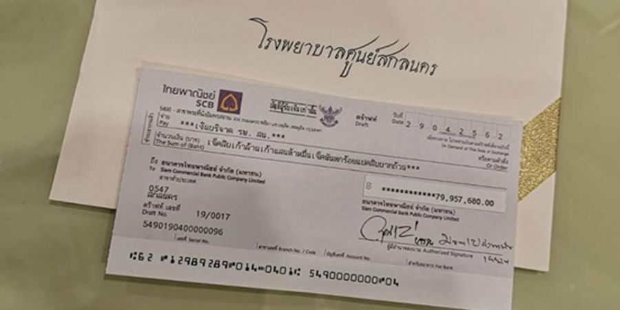 ภาพเช็ค ‘ในหลวง ร.10’ พระราชทานเงิน 79 ล้านบาท ซื้อเครื่องมือแพทย์ รพ.ศูนย์สกลนคร