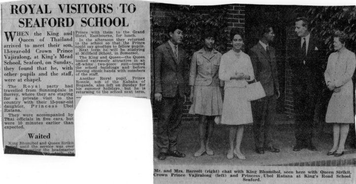 ทั้งนี้ เว็บไซต์ของโรงเรียนคิงสมีด ยังได้รวบรวมและเก็บรักษาคลิปข่าวเกี่ยวการเสด็จพระราชดำเนินมายังโรงเรียนด้วย โดยเป็นรายงานข่าวของสื่อในประเทศอังกฤษ ซึ่งระบุว่า พระบาทสมเด็จพระบรมชนกาธิเบศร มหาภูมิพลอดุลยเดชมหาราช พร้อมด้วยสมเด็จพระนางเจ้าสิริกิติ์ พระบรมราชินีนาถ พระบรมราชชนนีพันปีหลวง เสด็จเยือนโรงเรียนแห่งนี้เป็นการส่วนพระองค์ พร้อมด้วยทูลกระหม่อมหญิงอุบลรัตนราชกัญญา และพระบาทสมเด็จพระปรเมนทรรามาธิบดีศรีสินทรมหาวชิราลงกรณ พระวชิรเกล้าเจ้าอยู่หัว เมื่อครั้งยังดำรงรงพระอิสริยยศเดิม