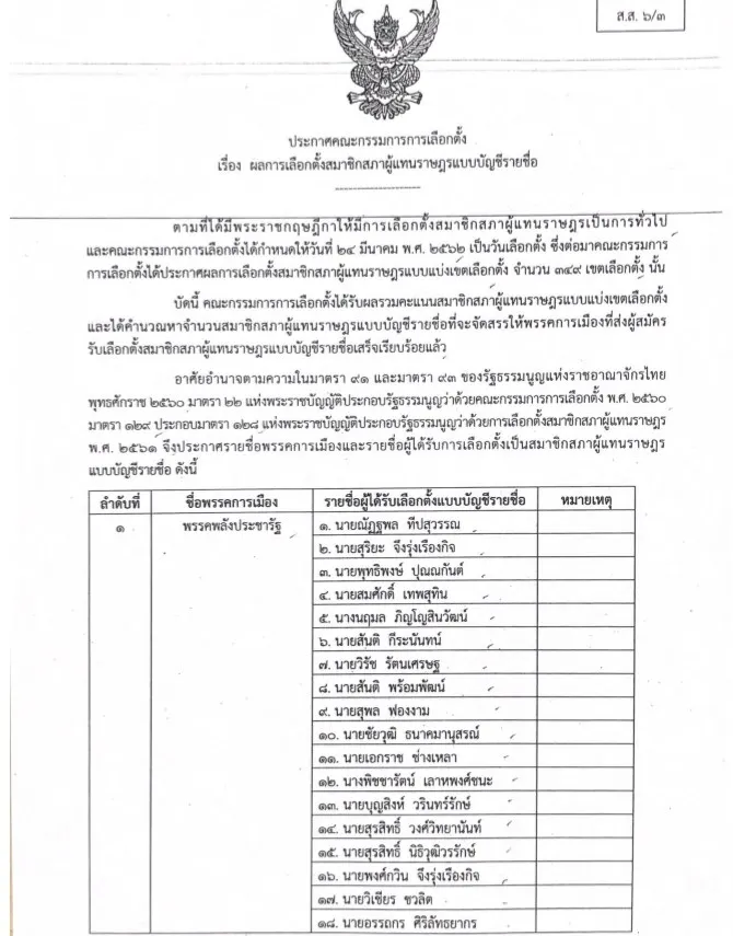 มาตามนัด!! กกต. ประกาศรับรองรายชื่อ ส.ส. แบบบัญชีรายชื่อ 149 คน