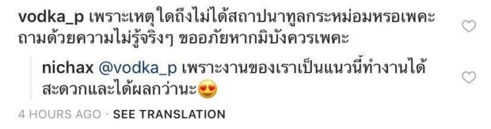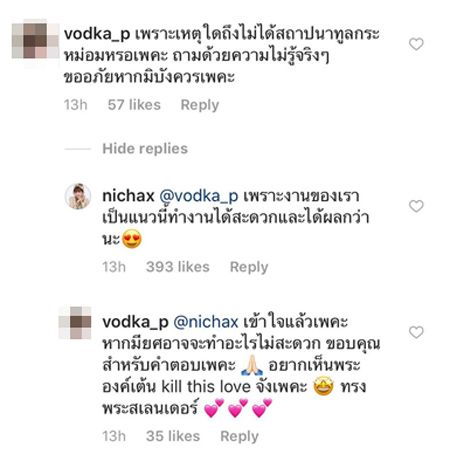 จากนั้นผู้ถามคนเดิมจึงเข้ามาตอบว่า “เข้าใจแล้วเพคะ หากมียศอาจจะทำอะไรไม่สะดวก ขอบคุณสำหรับคำตอบเพคะ อยากเห็นพระองค์เต้น kill this love จังเพคะ ทรงพระสเลนเดอร์ ” ก่อนที่ทูลกระหม่อมจะเข้ามาตอบว่า