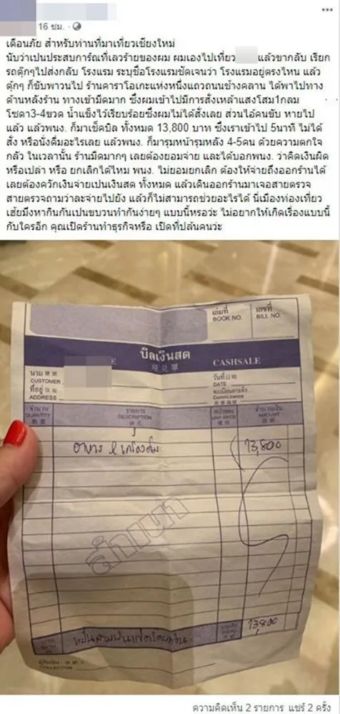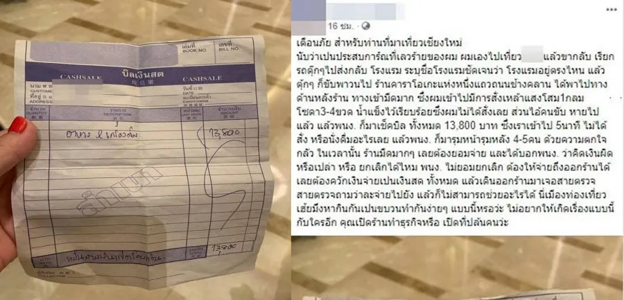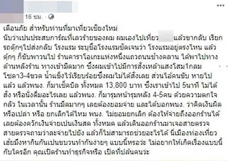 หนุ่มโพสต์เตือนมาเที่ยวเชียงใหม่ เรียกตุ๊กๆกลับโรงแรม แต่ถูกตุ๊กๆขับพาวนไปส่งร้านคาราโอเกะ เข้าไปแค่ 5 นาที เสียเงินไป 13,800 บาท