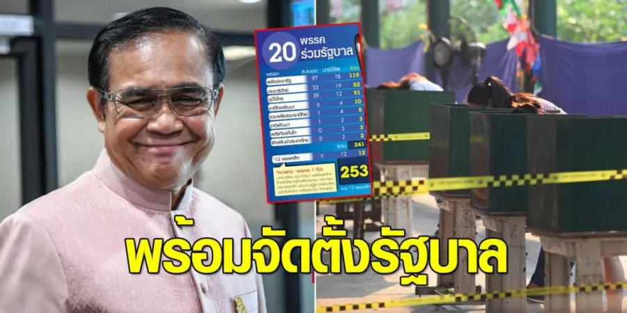 หลังจากที่ คณะกรรมการการเลือกตั้ง (กกต.)ได้ประกาศรับรองส.ส.ทั้งสองระบบรวมกัน 498 คน โดยมีผลคือ พรรคการเมืองฝ่ายที่สนับสนุน พล.อ.ประยุทธ์ จันทร์โอชา เป็นนายกรัฐมนตรี ซึ่งนำโดยพรรคพลังประชารัฐ(พปชร.) มีเสียงรวมกัน 254 ที่นั่ง ทำให้พรรคพลังประชารัฐจัดตั้งรัฐบาลได้ทันที โดยมี พล.อ.ประยุทธ์ เป็นนายกรัฐมนตรี อีกสมัย เพราะฝ่าย 7 พรรคการเมือง ที่ประกาศรวมตัวกันในนามฝ่ายประชาธิปไตยก่อนหน้านี้ ซึ่งนำโดยพรรคเพื่อไทย มีคะแนนรวมกันแค่ 245 เสียง