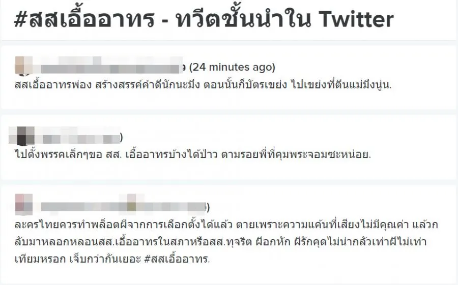 ล่าสุด เมื่อวันที่ 8 พฤษภาคม 2562 ในโลกโซเชียลแห่ติดแฮชแท็ก #สสเอื้ออาทร เนื่องจากมองว่า การประกาศ ส.ส. แบบนี้ไม่แฟร์เท่าใดนัก