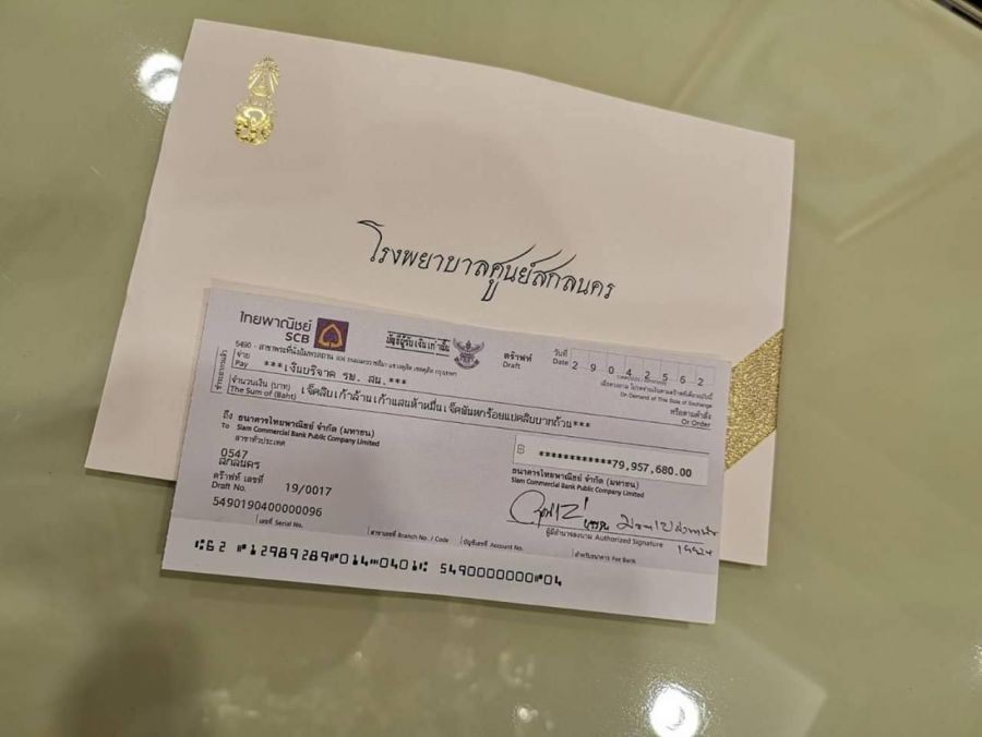 เป็นอีกหนึ่งเรื่องราวน่ายินดี โดยเพจ สกลนคร ซิตี้ ซึ่งเป็นเพจติดตามข่าวสารใน จ.สกลนคร โพสต์รูปสุดประทับใจในวันนี้ (8 พ.ค.) เป็นรูปเช็คที่พระบาทสมเด็จพระวชิรเกล้าเจ้าอยู่หัวพระราชทานแก่โรงพยาบาลศูนย์สกลนคร เพื่อจัดซื้อเครื่องมือแพทย์ ด้วยวงเงิน 79,957,680.00 บาท
