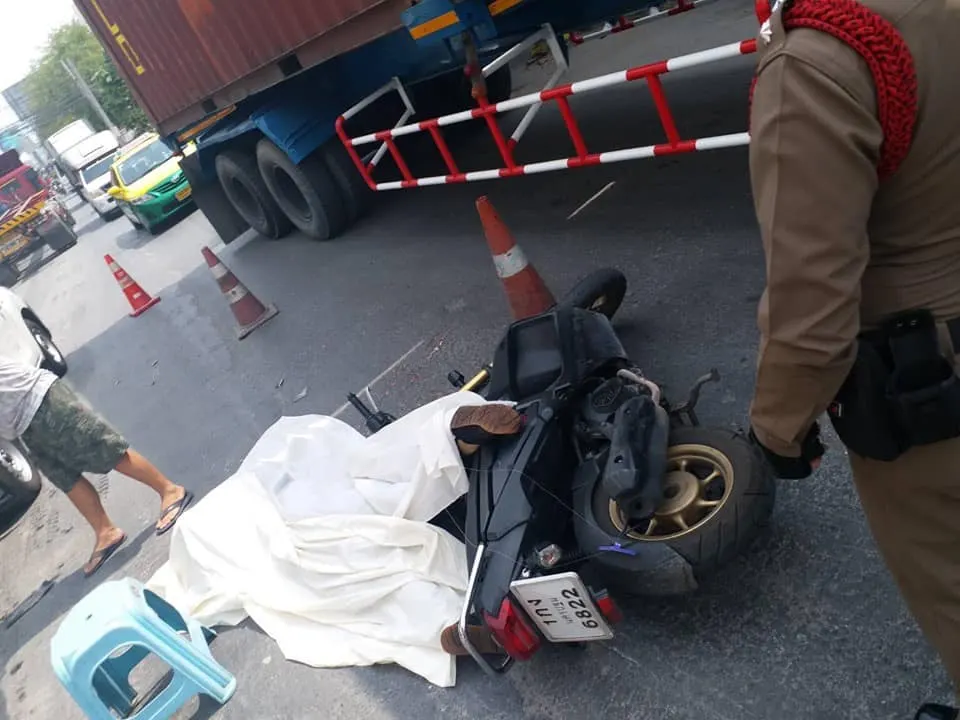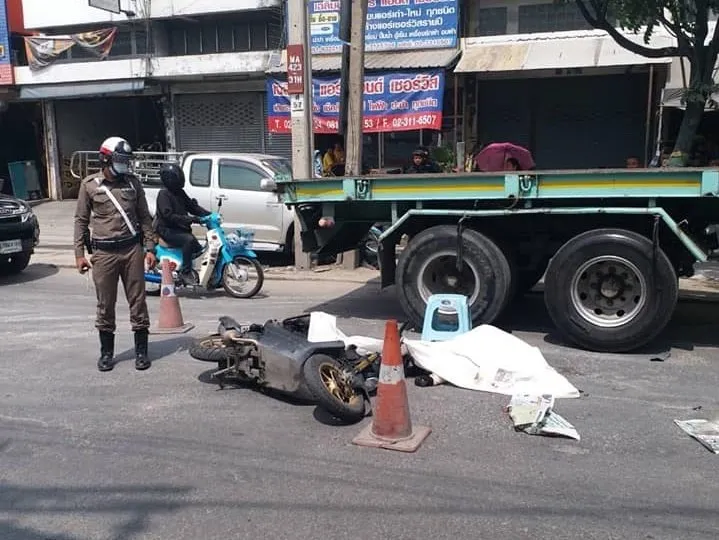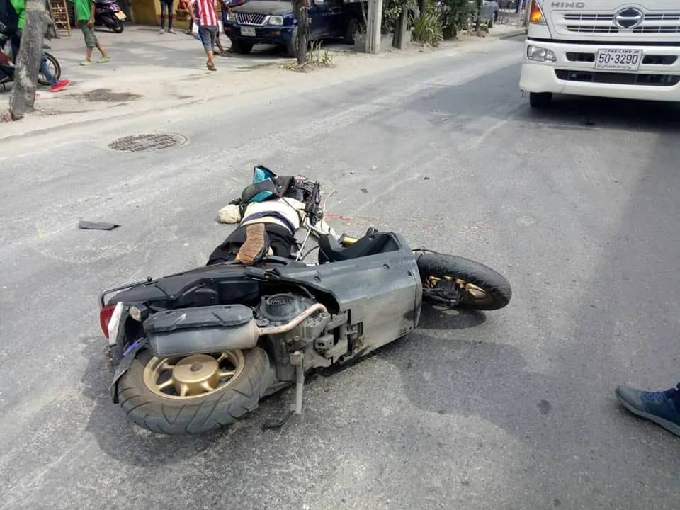 รถบรรทุกชนจักรยานยนต์ดับสยอง