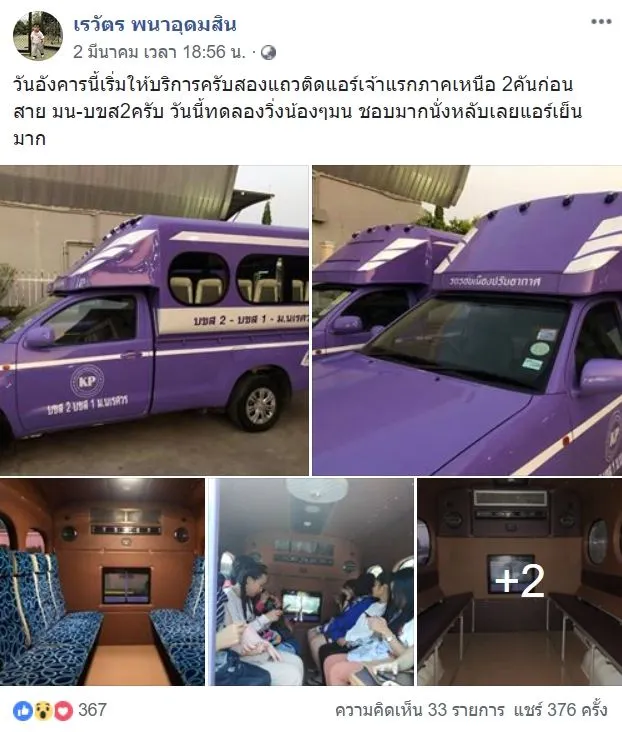 เป็นเรื่องราวที่ชาวเน็ตให้ความสนใจและแชร์กันมากบนโลกออนไลน์ เมื่อผู้ใช้เฟซบุ๊ก "เรวัตร พนาอุดมสิน" บุคลากรสถานีขนส่งผู้โดยสารพิษณุโลกแห่งที่ 2 จากการเผยแพร่ภาพรถสองแถวติดแอร์ของจังหวัดพิษณุโลก หลังเป็นที่กล่าวชื่นชมของผู้ที่ได้ทดลองใช้บริการเป็นอย่างมากช่วงเมื่อวานซืนที่ผ่านมา โดยโพสต์ดังกล่าวระบุว่า "วันอังคารนี้เริ่มให้บริการครับสองแถวติดแอร์เจ้าแรกภาคเหนือ 2 คันก่อน สาย มน.-บขส.2 ครับ วันนี้ทดลองวิ่งน้องๆ มน. ชอบมากนั่งหลับเลยแอร์เย็นมาก"