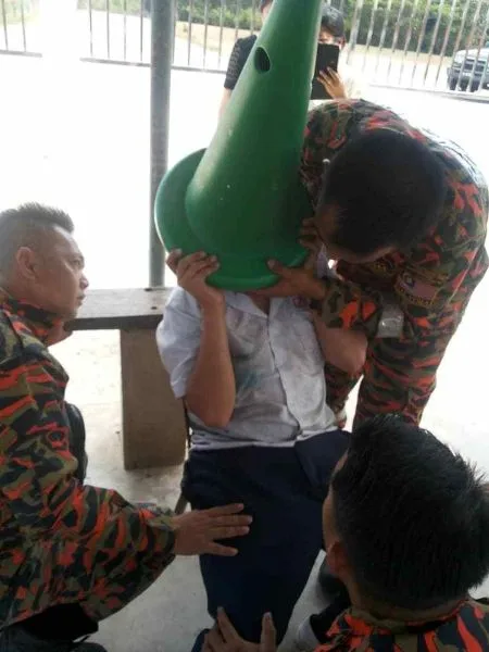 เรียกได้ว่าเด็กกับความซนมักเป็นของคู่กัน บางทีซนแล้วอาจจะได้ความรู้ บางทีซนแล้วอาจจะได้เรื่อง อันนี้ก็ต้องแล้วแต่กรณีว่าเป็นแบบไหน เช่นเดียวกับเรื่องราวของเด็กประถมชาวมาเลเซียคนนี้ ที่ไม่รู้ไปเล่นท่าไหนหัวของเขาจึงไปติดเข้ากับกรวย จนเอาไม่ออกและต้องตามเจ้าหน้าที่มาช่วยกันอย่างวุ่ยวาย