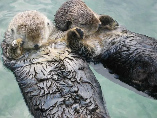 1 นากทะเลจะจับมือกัน ในขณะที่พวกมันหลับ เพื่อป้องกันไม่ให้พวกมันแยกจากกันขณะที่นอนลอยตัวอยู่