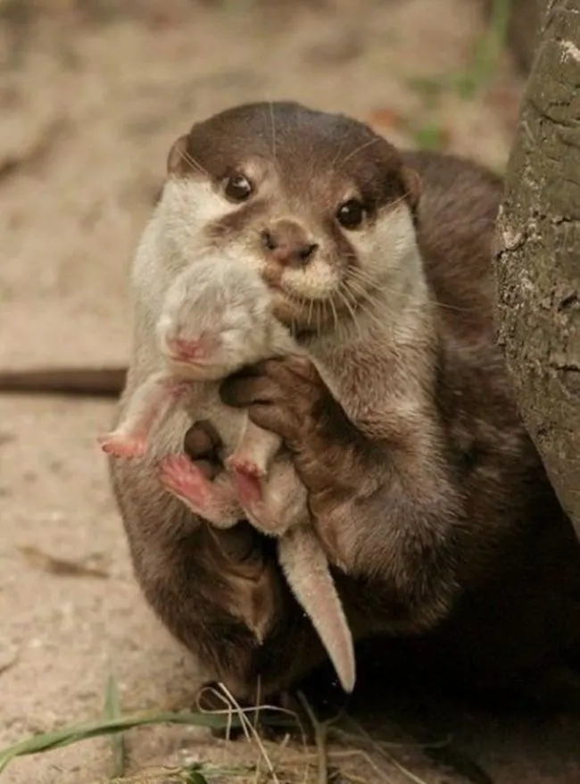 2 นาก จะอุ้มลูกของมันเอาไว้ เมื่อพวกมันต้องเผชิญกับอันตราย เพื่อให้นักล่ารู้สึกสงสารพวกมันบ้าง