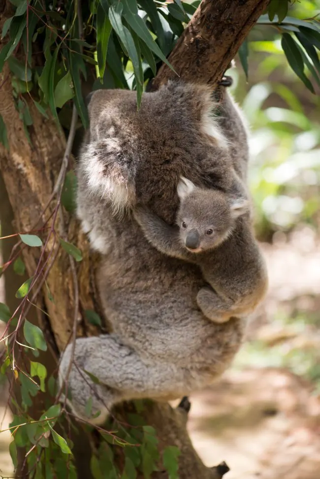 17 หลังจากที่หมีโคอาลาโตขึ้นและโตกว่ากระเป๋าหน้าท้องของแม่ มันจะไปขี่หลังแม่ของมัน