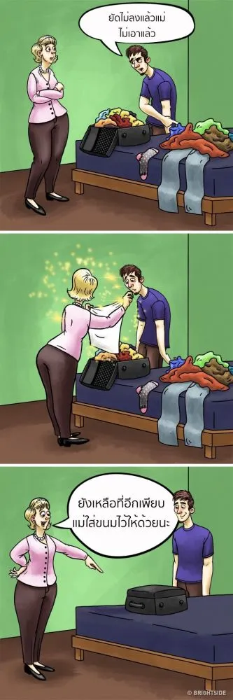 ไม่ต้องกังวลว่าจะขาดอะไร เพราะแม่มักจะเตรียมพร้อมให้ขณะเดินทาง ไม่ว่าจะเป็นขนม อาหาร ต่างๆ กลัวลูกจะหิวหากต้องเดินทางไกล