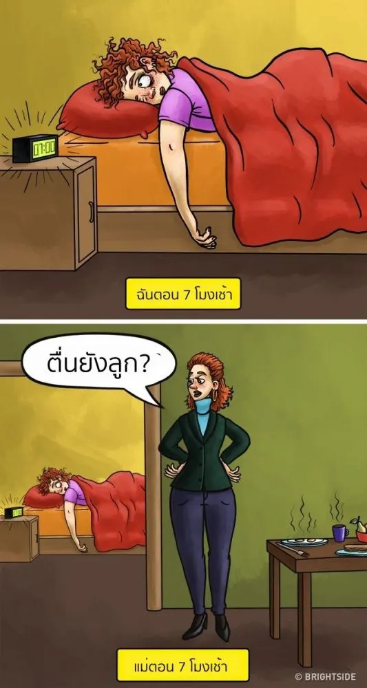 ไม่ต้องกังวลว่าจะสายหากอยู่กับแม่ แม่จะมาปลุกเราเสมอ