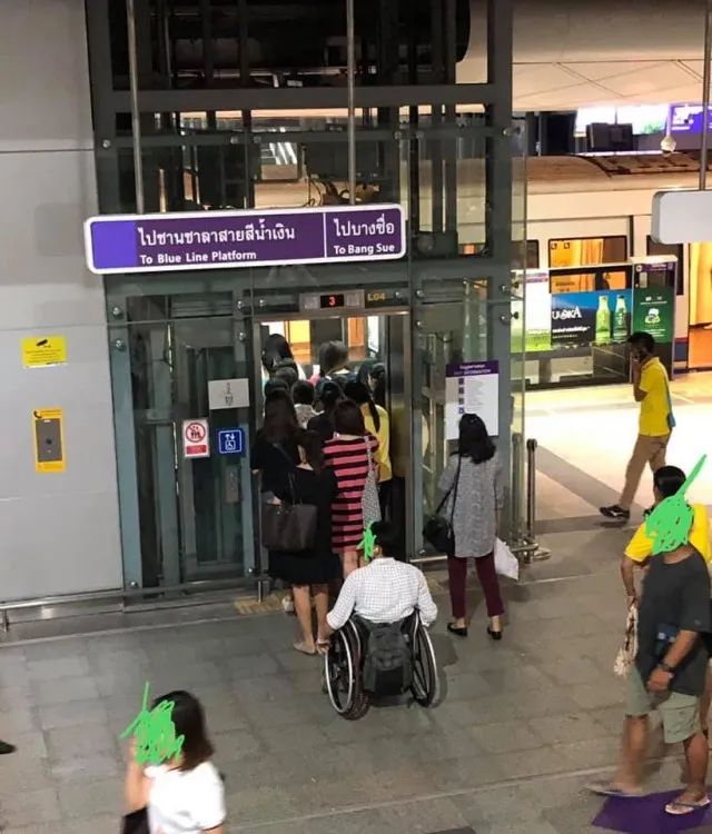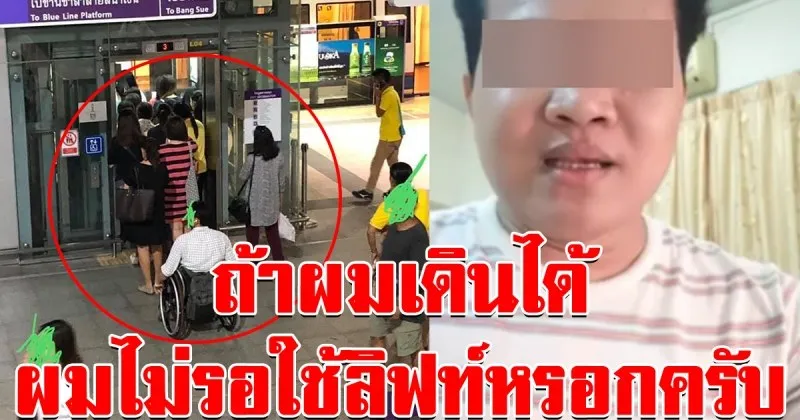 จากกรณีที่ในโลกออนไลน์ได้มีการแชร์ภาพหนุ่มนั่งวีลแชร์ รอขึ้นใช้ลิฟท์ในสถานีรถไฟฟ้า แต่ทว่าเมื่อลิฟท์มาถึงกลับกลายเป็นว่า มีผู้คนที่ปกติดีรีบแย่งกันขึ้นไป โดยไม่สนใจเลยว่ามีผู้ใช้วีลแชร์รอขึ้นอยู่ ทั้งที่ลิฟท์ดังกล่าวมีวัตถุประสงค์สำคัญเพื่ออำนวยความสะดวกแก่ผู้ที่จำเป็นต้องใช้ เช่น หนุ่มที่นั่งวีลแชร์คนนี้ซึ่งไม่สามารถขึ้นลงบันไดเหมือนกับคนปกติทั่วไปได้ และที่ลิฟท์ยังมีสัญลักษณ์ติดไว้สำหรับคนนั่งวีลแชร์อีกด้วย