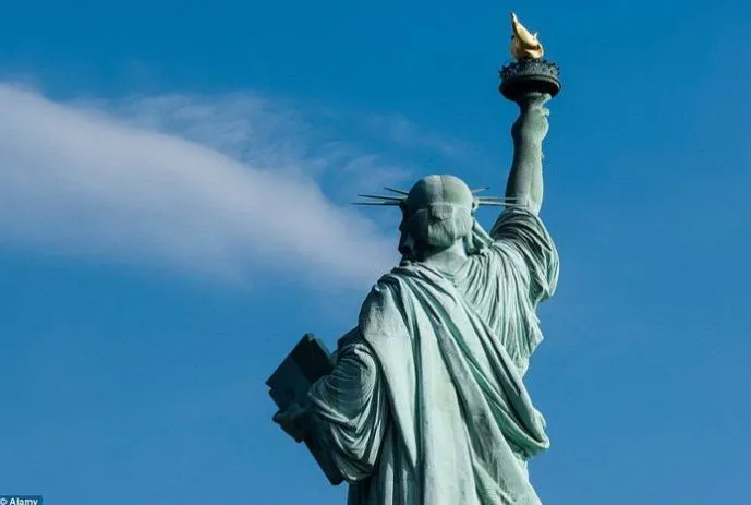4. ด้านหลังอนุเสาวรีย์เทพีเสรีภาพ บนเกาะลิเบอร์ตี้ อ่าวนิวยอร์ก ประเทศสหรัฐอเมริกา