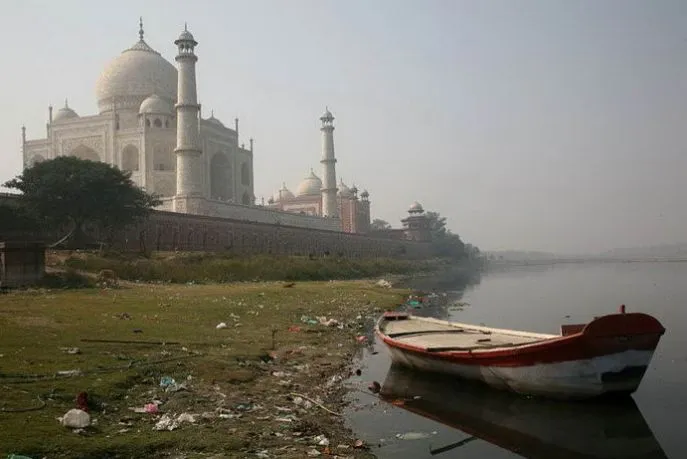 10. ด้านหลังของทัชมาฮาล ที่ติดกับแม่น้ำยมุนาที่ได้ชื่อว่าเป็นแม่น้ำศักดิ์สิทธิ์ของชาวฮินดู ในประเทศอินเดีย