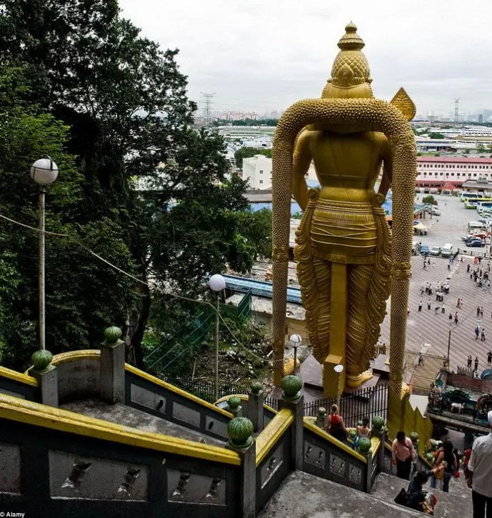 7. ด้านหลังของรูปปั้นพระขันธกุมาร บริเวณถ้ำบาตู ประเทศมาเลเซีย