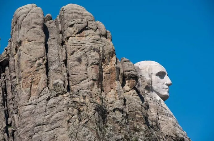 8. ด้านหลังของอนุสรณ์สถานแห่งชาติเขารัชมอร์ ที่มีรูปปั้นแกะสลักใบหน้า 4 ประธานาธิบดีของสหรัฐอเมริกา