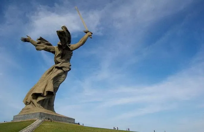 9. ด้านหลังของอนุเสาวรีย์ Motherland Calls ในประเทศรัสเซีย
