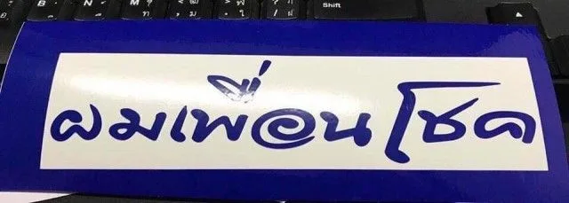"ว่าที่สติกเกอร์หลังรถยอดฮิตอันใหม่ ท่าจะมาแรงแซงสติกเกอร์วัดท่าไม้ แต่มันทำมาเผื่อ ใครสนใจอยากได้มั่งเด่วให้มันทำเผื่อมาแจก"