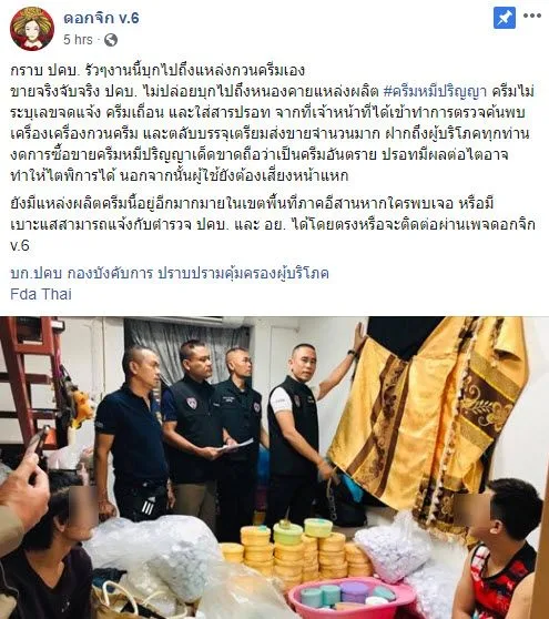 ยังมีแหล่งผลิตครีมนี้อยู่อีกมากมายในเขตพื้นที่ภาคอีสานหากใครพบเจอ หรือมีเบาะแสสามารถแจ้งกับตำรวจ ปคบ. และ อย.