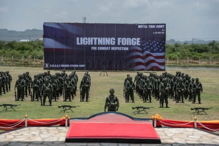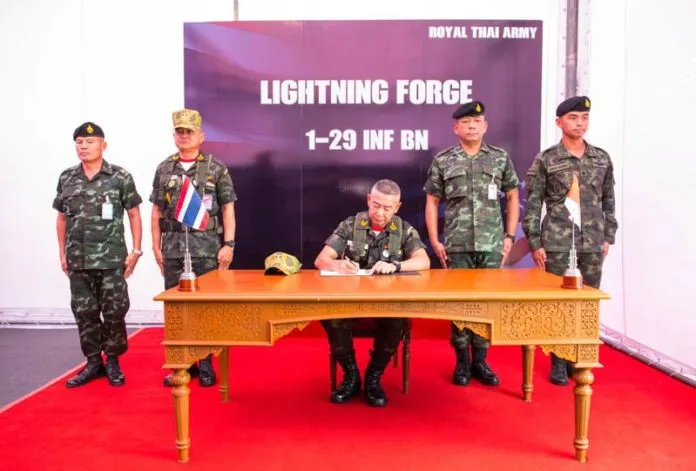 เมื่อวันที่ 10 พ.ค. ที่กองพลทหารราบที่ 9 จ.กาญจนบุรี พล.ต.ฐกัด หลอดศิริ ผู้บัญชาการกองพลทหารราบที่ 9 (ผบ.พล ร.9) พร้อมด้วย พ.อ.สราวุธ ไชยสิทธิ์ ผู้บังคับการกรมทหารราบที่ 29 ให้การต้อนรับ พล.อ.อภิรัชต์ คงสมพงษ์ ผู้บัญชาการทหารบก ในโอกาสเดินทางมาตรวจเยี่ยมและมอบแนวทางในการนำกำลังพล ของ กองพลทหารราบที่ 9 เข้ารับการฝึกร่วม ระหว่าง กองทัพบกไทย และ กองทัพบกสหรัฐ ภายใต้รหัส Lightning Forge 2019 ณ เกาะ Oahu รัฐ Hawaii ในช่วงเดือน พ.ค. – มิ.ย.62 ในการฝึกครั้งนี้ เป็นดำริ ของ ผู้บัญชาการทหารบก ที่ต้องการพัฒนาขีดความสามารถของกำลังพลและยกระดับมาตรฐานการฝึกของ ทบ.ไทยให้เป็นมาตรฐานสากลมากยิ่งขึ้น และนอกจากกำลังพลในส่วนนี้ จะเข้ารับการฝึกร่วมกับ พล.ร.25 ของ กองทัพบกสหรัฐแล้ว ยังต้องเข้ารับการทดสอบ/ประเมินผลการฝึก ตามมาตรฐานการฝึกของ กองทัพบกสหรัฐ ณ ศูนย์ฝึก JRTC, Fort Polk, รัฐ Louisiana