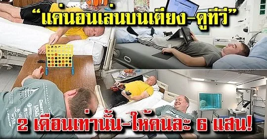 NASA ประกาศหาอาสาสมัครชาย-หญิง 24 คน ให้คนละ 6 แสน ทำภารกิจนอนเล่นบนเตียง 2 เดือน มีทีวีให้ดูแก้เบื่อ เพื่อศึกษาเกี่ยวกับผลกระทบของแรงโน้มถ่วงเทียมต่อร่างกายมนุษย์