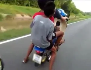 โจ๋ซิ่งมอร์ไซค์ โชว์สเต็ปยกล้อ แต่คนถ่วงรองเท้าหลุด ทำชีวิตเปลี่ยนทั้งคัน (คลิป)