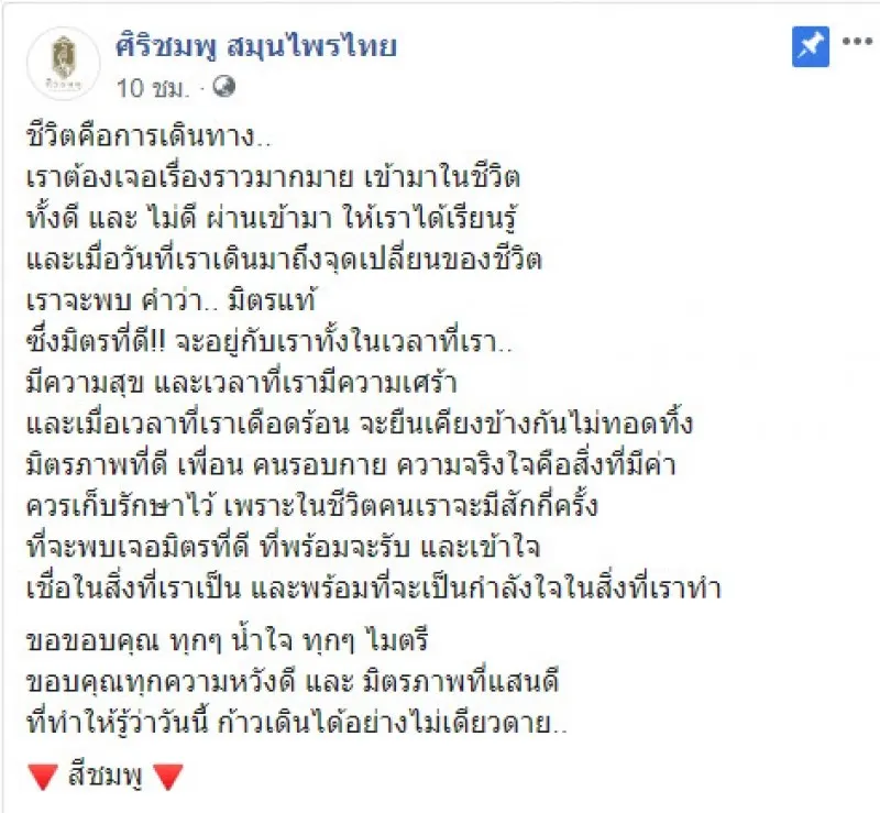 เมียบิ๊กโจ๊ก เคลื่อนไหวแล้ว โพสต์เป็นนัย เมื่อถึงจุดเปลี่ยนของชีวิต เราจะพบมิตรแท้