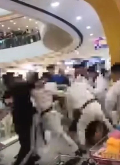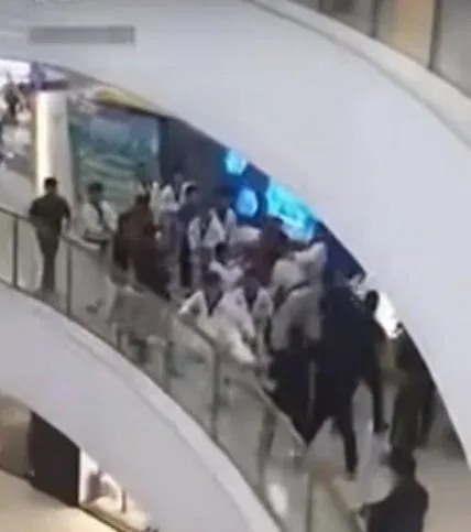 (ผู้คนในห้าง พากันเดินหนีไม่ก็ถ่ายคลิปศึกนี้เอาไว้)