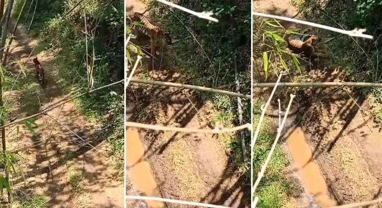 กลายเป็นคลิปที่ถูกแชร์และพูดถึงกันเป็นอย่างมาก เมื่อทางผู้ใช้เฟซบุ๊กรายหนึ่งได้ออกมาโพสต์คลิปเหตุการณ์สุดระทึก หลังเข้าป่าไปเจอเสือโคร่ง แล้วต้องหนีเพื่อเอาตัวรอดด้วยการปีนขึ้นไปอยู่บนต้นไผ่ โดยเหตุการณ์ที่เกิดบริเวณทางเข้า-ออกหมู่บ้านไล่โว่ อ.ขละบุรี จ.กาญจนบุรี ติดกับเขตรักษาพันธุ์สัตว์ป่าทุ่งใหญ่นเรศวร จ.ตาก โดยเขานั้นได้โพสต์คลิปพร้อมระบุข้อความด้วยว่า