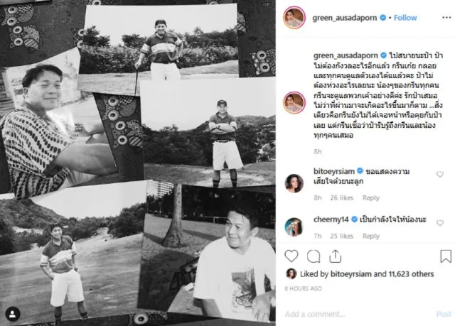 กรีน อัษฎาพร โพสต์สุดอาลัย เป็นภาพคุณพ่อ หลัง คุณพ่อเสียชีวิตแล้ว พร้อมแคปชั่นสุดเศร้าด้วยว่า ไปสบายนะป๋า ป๋าไม่ต้องกังวลอะไรอีกแล้ว กรีนเก้ย กลอยและทุกคนดูแลตัวเองได้แแล้วคะ ป๋าไม่ต้องห่วงอะไรเลยนะ น้องๆของกรีนทุกคน กรีนจะดูแลพวกเค้าอย่างดีค่ะ รักป๋าเสมอไม่ว่าที่ผ่านมาจะเกิดอะไรขึ้นมาก็ตาม สิ่งเดียวคือกรีนยังไม่ได้เจอหน้าหรือคุยกับป๋าเลย แต่กรีนเชื่อว่าป๋ารับรู้ถึงกรีนและน้องทุกๆคนเสมอ โดยมีเพื่อนพ้องในวงการบันเทิง อาทิ พิ้งกี้ สาวิกา , เชียร์ ฑิฆัมพร , เอส กันตพงศ์ , หยก ธัญยกันต์ , ฝ้าย ณิชานันท์ เป็นต้น รวมทั้งแฟนคลับ ให้กำลังใจและร่วมอาลัยแสดงความเสียใจด้วย