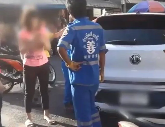 (เจ้าหน้าที่ ชาวบ้านเข้ามาช่วยเหลือเพื่อเอาเด็กออกจากรถ)
