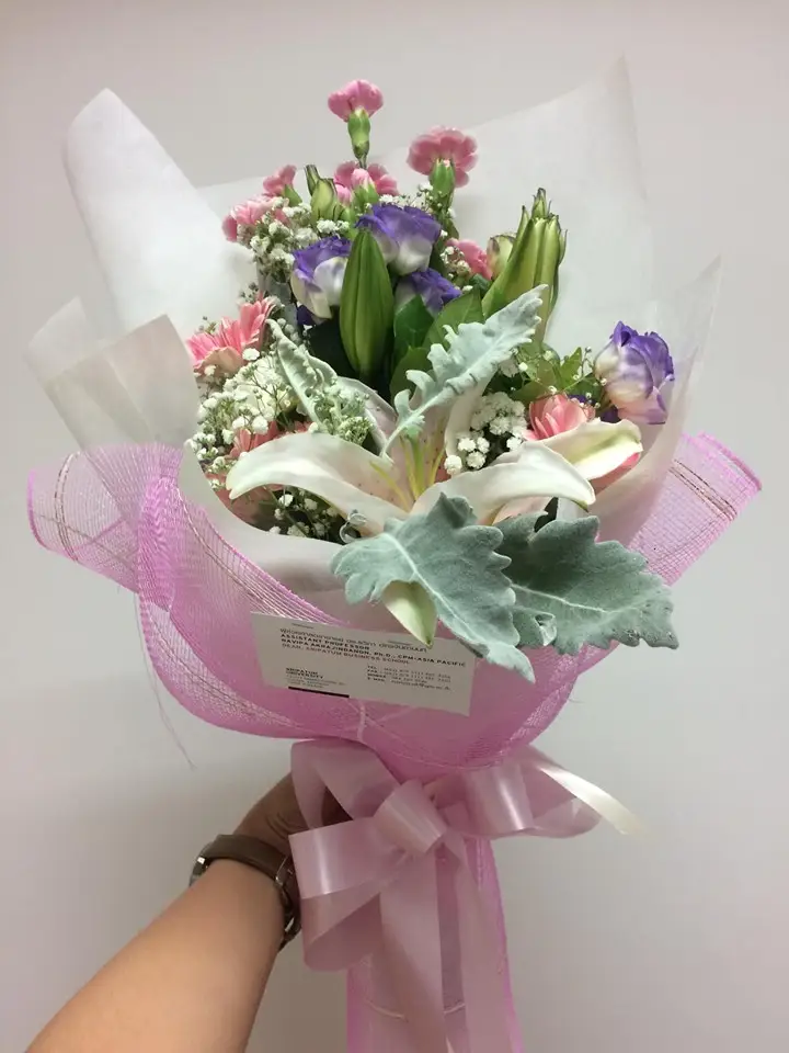 “พลอย” รุ่งทิพย์ เหลืองจริยากุล นักศึกษาสาขาวิชาการจัดการ คณะบริหารธุรกิจ ม.ศรีปทุม รับมอบช่อดอกไม้ แสดงความยินดีผ่านการสอบคัดเลือกติด 1ใน50คนสุดท้าย จากผู้สมัครทั่วประเทศกว่า 5,000 คน SINGHA Biz Course 11 เน้นสัมผัสประสบการณ์จริง