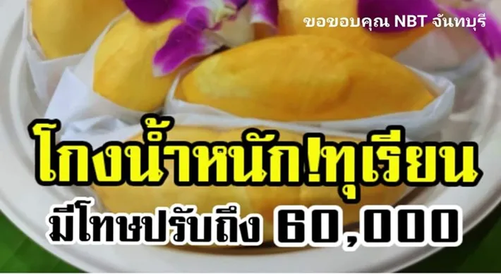 เตือนโทษหนัก!! ขายทุเรียนโกงน้ำหนักลูกค้า มีโทษถึงจำคุก 3 ปี ปรับ 6 หมื่นบาท