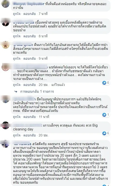 ที่สำคัญควรทบทวนพิจารณามาตรการควบคุมผู้ประกอบการนำเที่ยว และผู้ประกอบการร้านอาหาร และโรงแรมบนเกาะล้านทุกรายให้ปฏิบัติตามข้อกำหนดในประกาศพื้นที่คุ้มครองสิ่งแวดล้อมอย่างเคร่งครัด