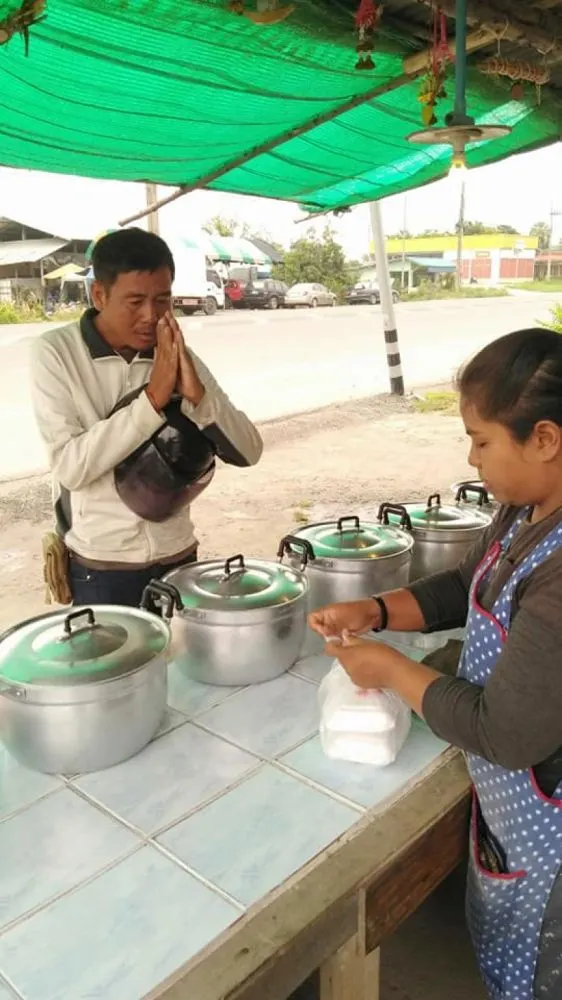 โดยรายละเอียดดังกล่าวผู้ใช้เฟซบุ๊กชื่อ "อรทัย วรสุนทร" เล่าว่า โดนโกงค่าแรงก่อสร้างไม่มีเงินติดตัวเลยขอข้าวกินมาหลายร้านแต่ไม่มีใครให้กิน เลยมาเจอร้านเราเขียนป้ายไว้เลยลองขอดู (ที่ทำให้รู้ให้เห็นก็แค่อยากให้สังคมน่าอยู่ ไม่ได้อยากได้หน้าเพราะไม่ต้องการชีวิตแม่ค้าเป็นคนจนอยู่แล้วก็แค่อยากแบ่งปันเพราะรู้ว่าเวลาไม่มีกินมันเจ็บปวดขนาดไหน) ทำให้มีชาวเน็ตเข้ามาแสดงความเห็นกันอย่างมากมาย พร้อมกับชื่นชมแม่ค้าเจ้าของร้านที่มีน้ำใจแก่เพื่อนมนุษย์ด้วยกัน