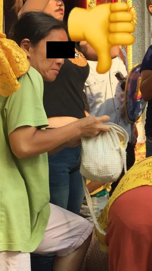 พร้อมโยนซองที่ล้วงมาได้ทิ้ง ซึ่งมีสามีขับสาเล้งรอรับอยู่ข้างโบสถ์#มิจฉาชีพมารศาสนาและภายหลังจากที่นาคบวชยังทราบอีกว่าได้พยายามจะล้วงโทรศัพท์มือถือของนาคด้วยจากการสอบถามพบว่าหญิงดังกล่าวปฎิบัติแบบนี้ประจำ และส่วนมากก็ไม่ได้เอาความเพราะเอาลูกน้อยมาด้วย ซึ่งลูกน้อยร้องให้เสียงดังในขณะที่แม่ถูกจับได้ ไม่ได้เอาความอะไร เพราะคิดว่าเป็นงานบุญ#ฝากเตือนภัยด้วยนะคะ #ในวัดก็ไม่เว้น #บาปกรรมตกนรก#ขโมยตามงานบวช #ขโมยล้วงกระเป๋า”