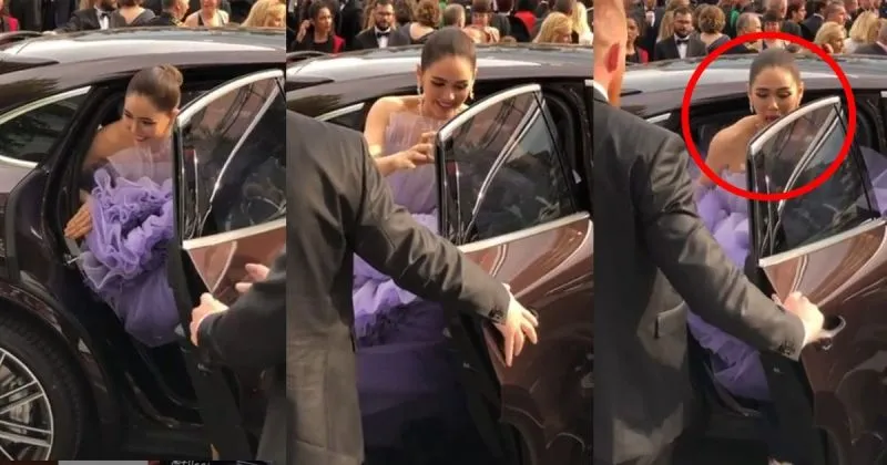 นาที ชมพู่ ติดบนรถเพราะชุดใหญ่เกิน ทำเอาร้องลั่น กลางเมืองคานส์ (คลิป)