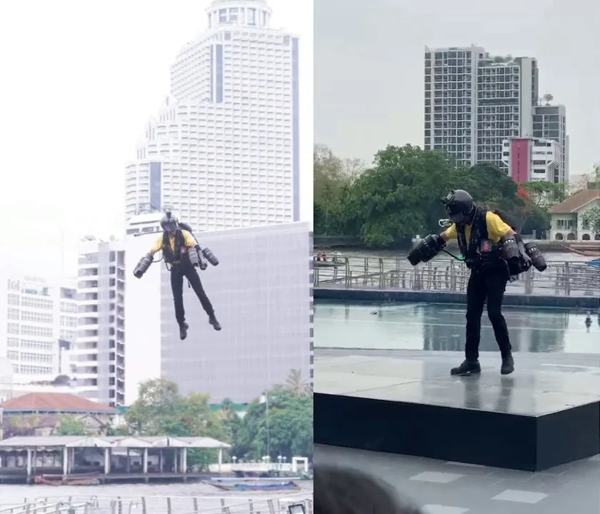 โชว์คนใส่ชุด เจ๊ตสูท แล้วเหาะได้ที่สยามไอคอน
