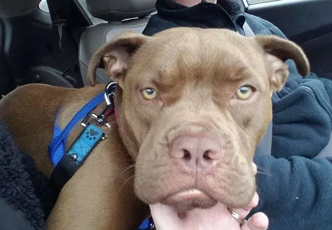 ไม่มีใครรู้ว่า Blue ลูกสุนัขพิทบูลพันธุ์ผสมเดินทางจากรัฐฟลอริดาประเทศอเมริกาถึงรัฐมิชิแกนประเทศอังกฤษได้ด้วยวิธีใด แต่การเดินทางของมันจบลงที่ศูนย์ช่วยเหลือและพักพิงสัตว์ Humane Society of Midland County ของมิชิแกนเมื่อกลางเดือนมีนาคมในฐานะสุนัขข้างถนนและเจ้าหน้าที่พบว่ามันมีไมโครชิปฝังอยู่