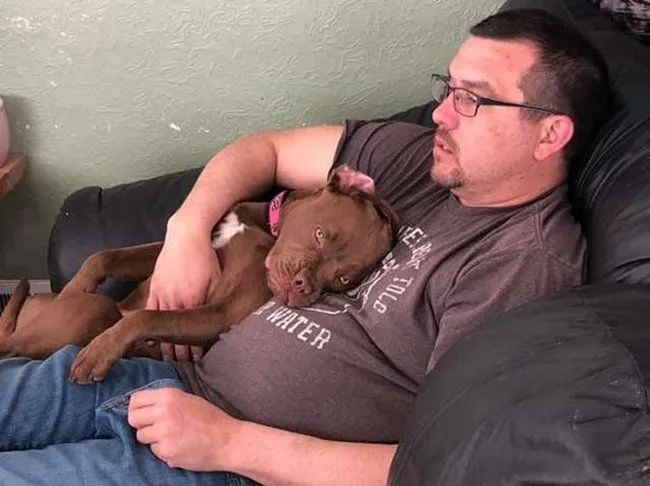หลังจากกลับมาถึงศูนย์ช่วยเหลือได้สองชั่วโมง ชายผู้ผ่านการตรวจสอบประวัติและได้รับสิทธิ์เลี้ยงดูเจ้า Blue ก็รีบมาพบมัน “ผมกำลังมองหาสุนัขสักตัวหลังจากเสียสุนัขพิทบลูไปเมื่อหกเดือนก่อน” Robert Allison เจ้าของคนใหม่กล่าวและเขารับมันกลับบ้านทันทีในวันนั้น