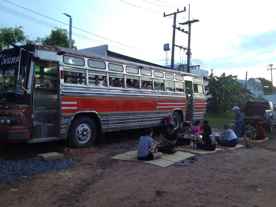 ในช่วงนั้นขับรถผ่านจังหวัดงหวัดกาฬสินธุ์มีรถบัสเก่าจอดขายอยู่ข้างถนน เลยตัดสินใจซื้อมาในราคา 160,000 บาท มาตกแต่งใหม่และทำที่นั่งสำหรับลูกค้า ออกแบบและทำระบบไฟเอง