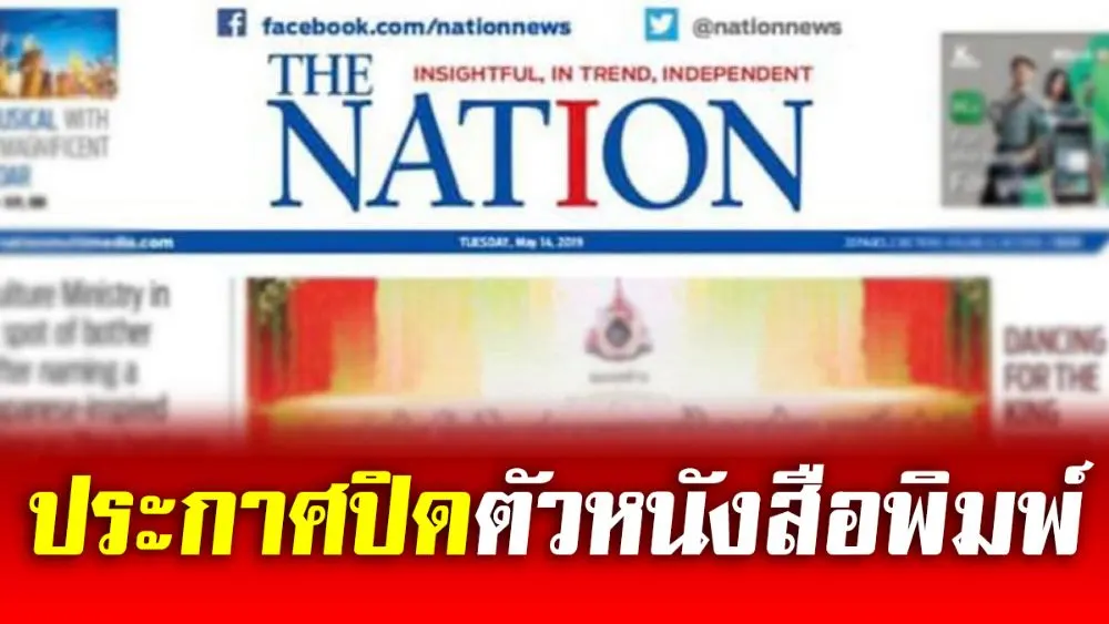 หนังสือพิมพ์ภาษาอังกฤษ THE NATION ประกาศปิดตัวอีกฉบับในวันที่ 28 มิถุนายน 2562 โดยจะเน้นเป็นสื่อออนไลน์แทน